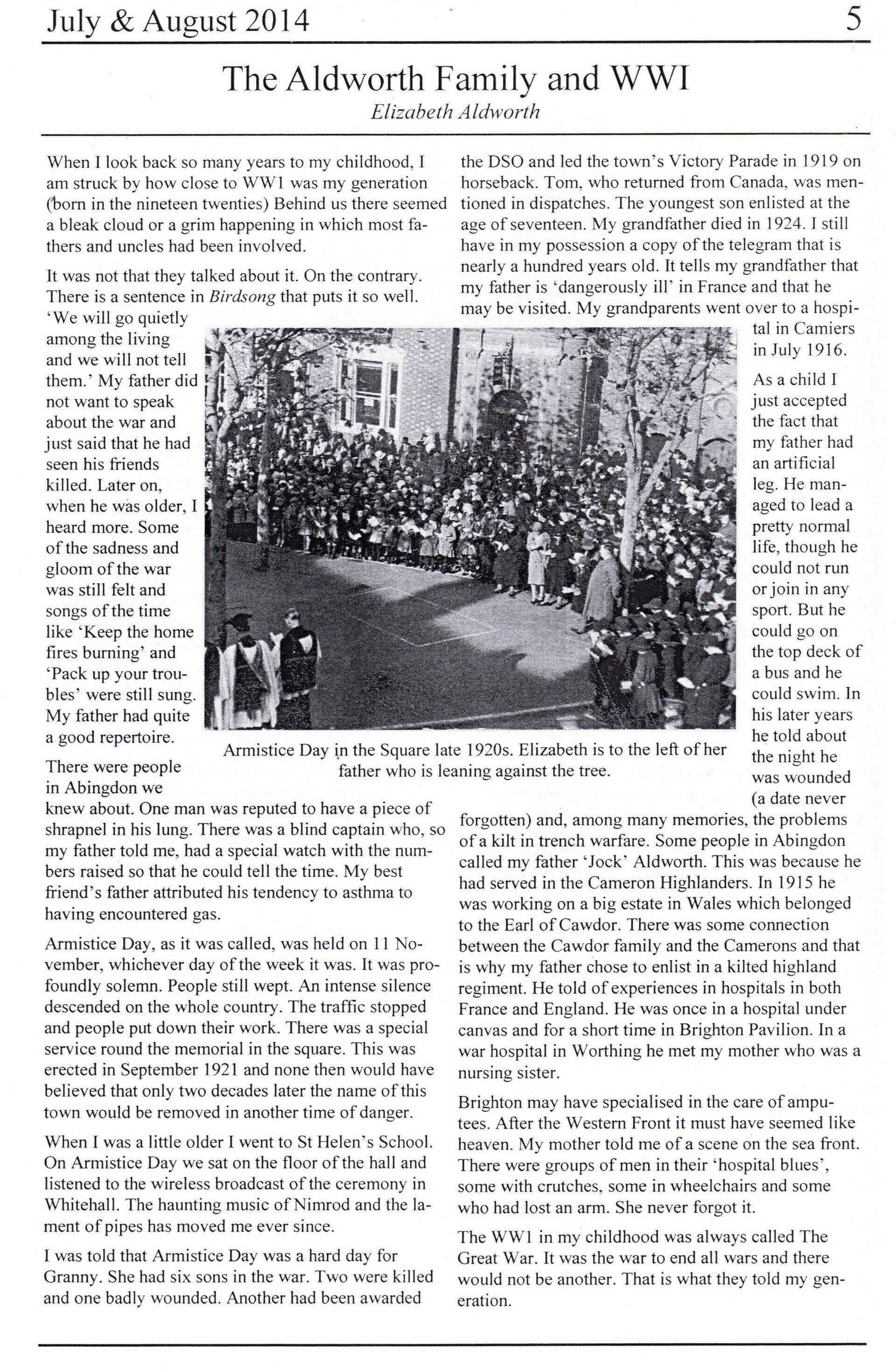 Family Details: Next of kin William Aldworth, 15 West St Helens Street, Abingdon, Berkshire.