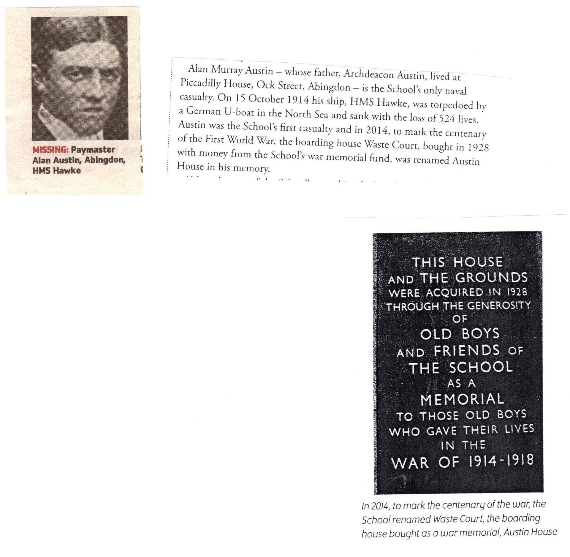 Since 2014, the house is now called Austin House in honour of the first Abingdonian to give his life in the Great War.