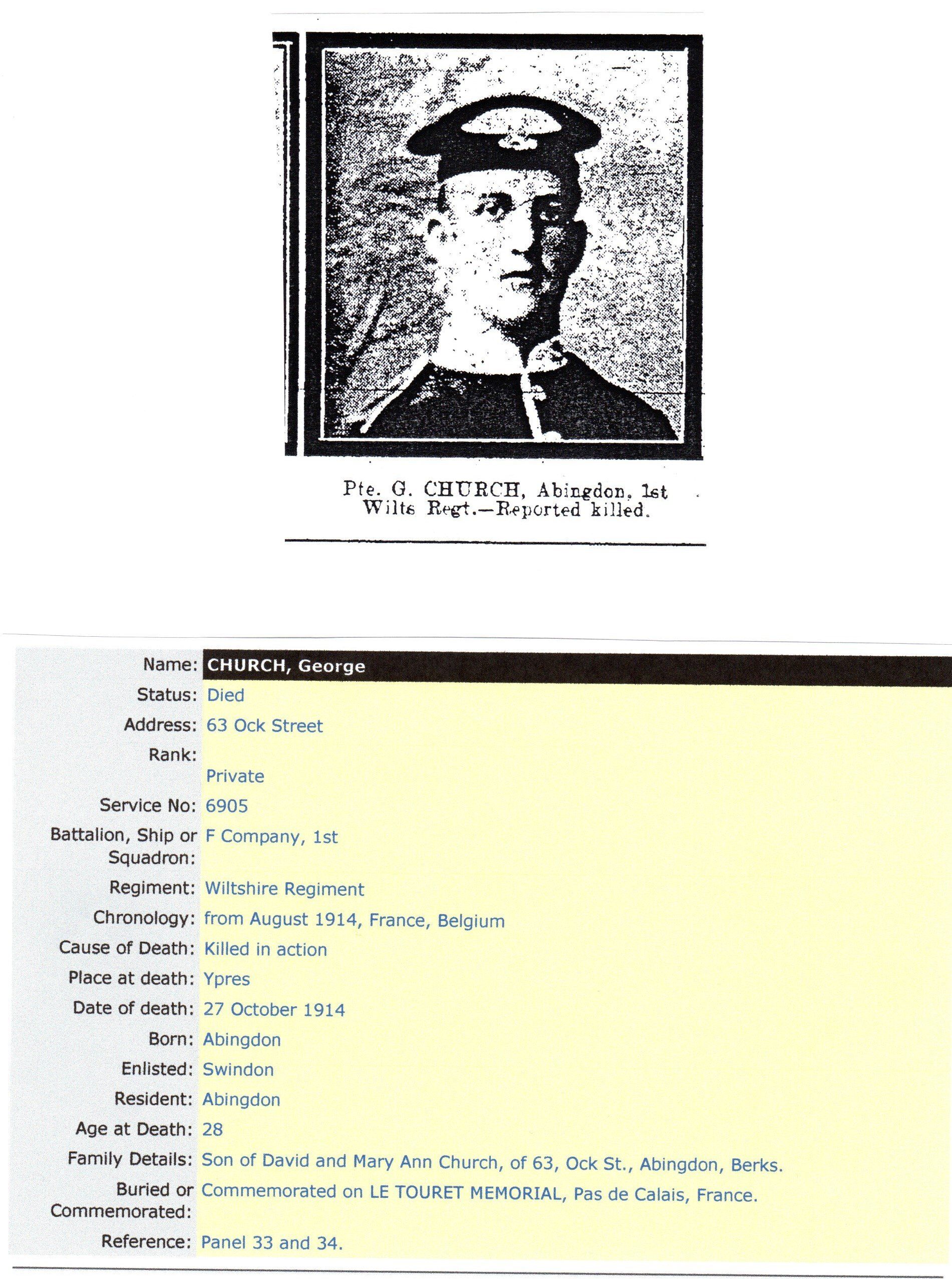 Family Details: Son of David and Mary Ann Church, of 63, Ock St., Abingdon, Berks.