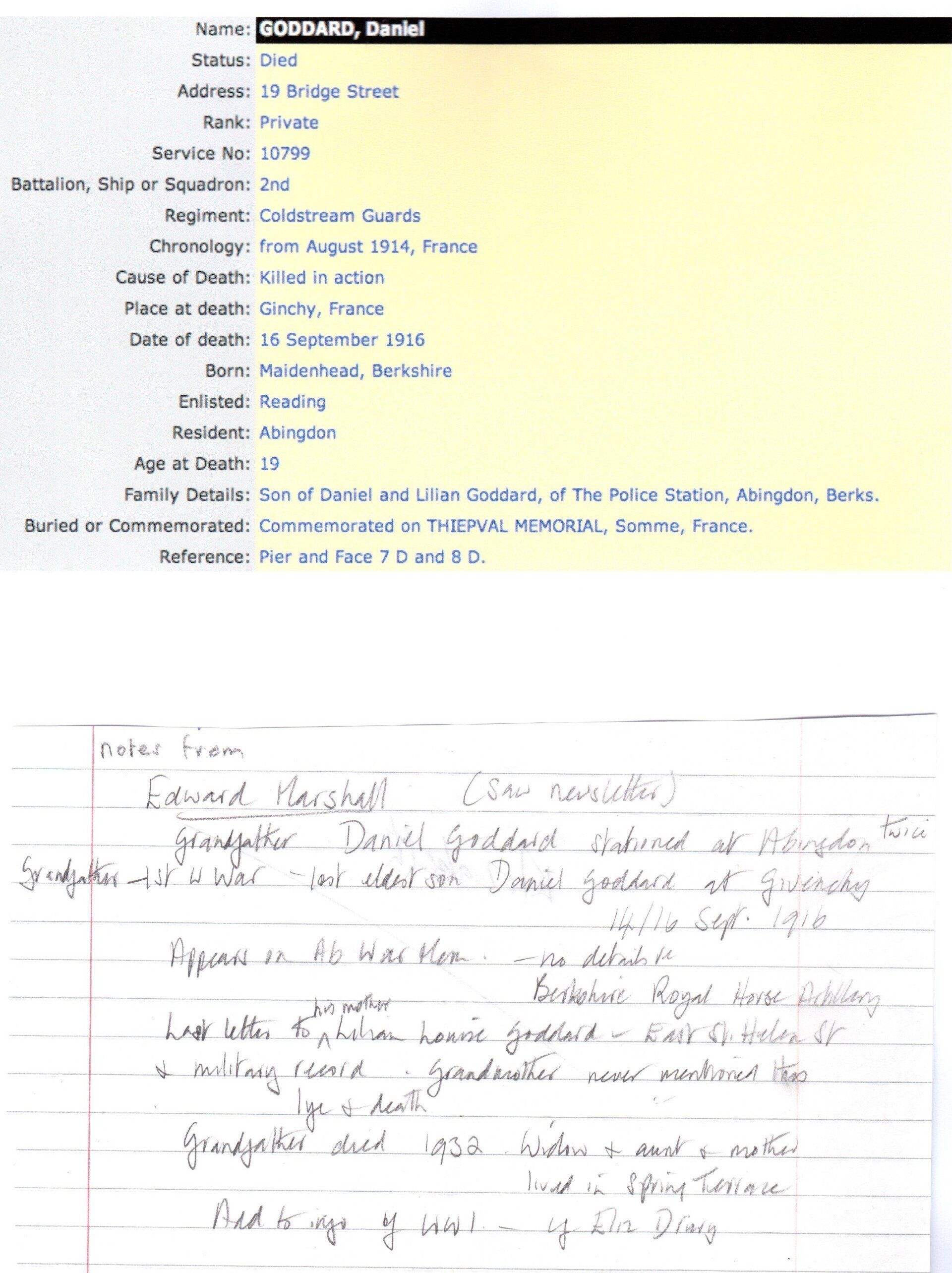 Family Details: Son of Daniel and Lilian Goddard, of The Police Station, Abingdon, Berks.