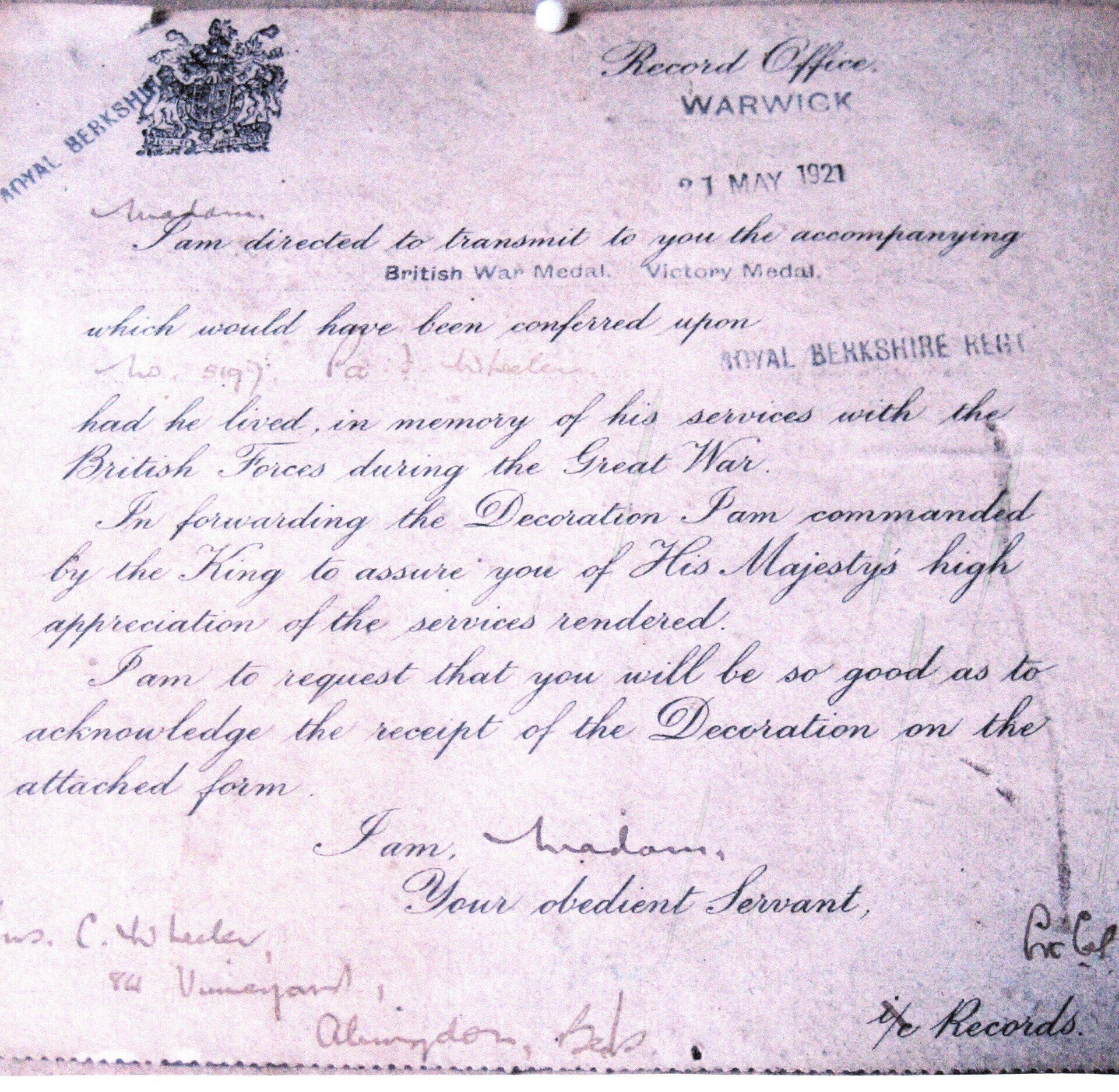 Family Details: Son of Mrs. Caroline Wheeler, of 84, Vineyard, Abingdon, Berks.