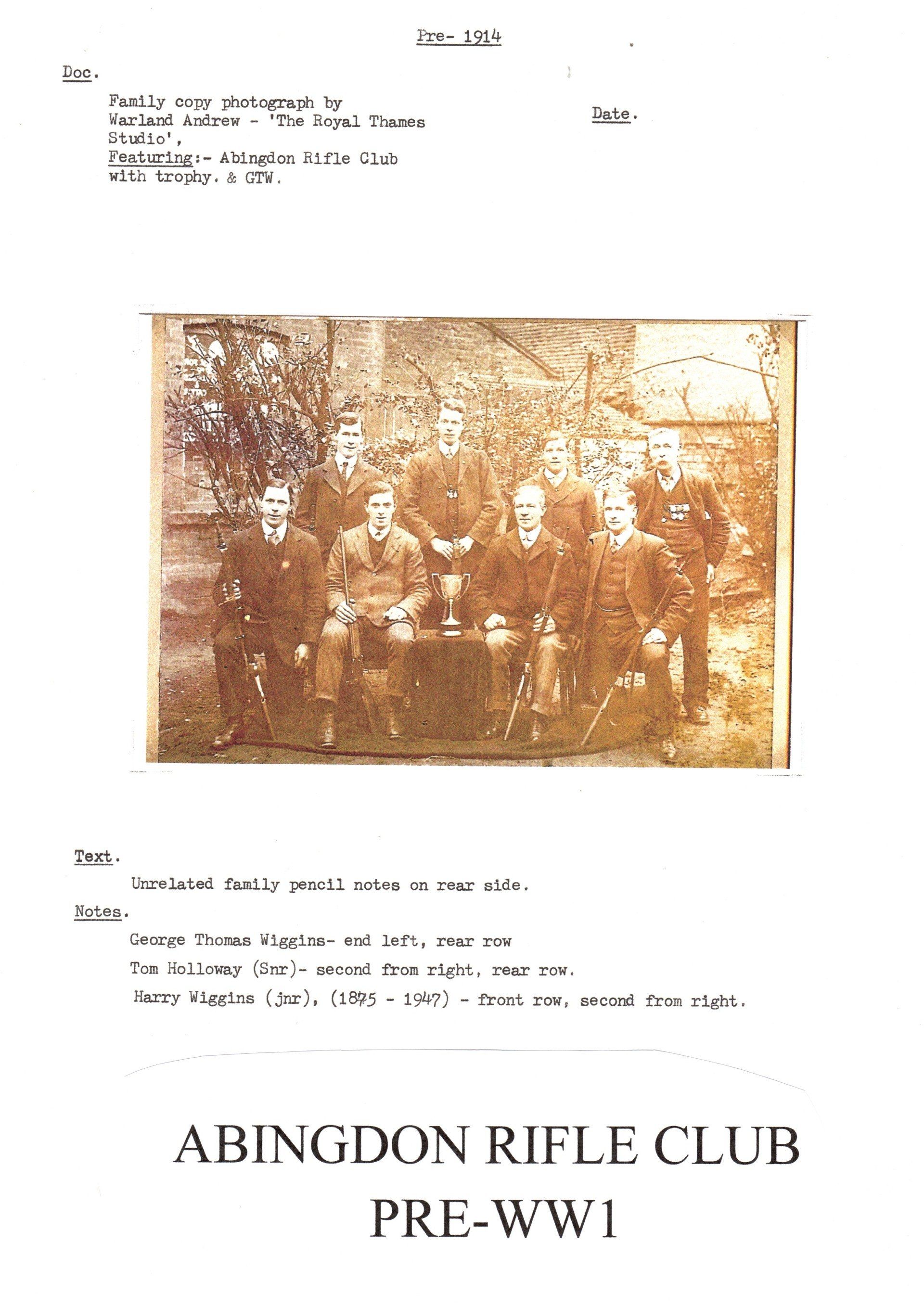 Harry appears in this photo of Abingdon Rifle Club, in the front row, second from the right.